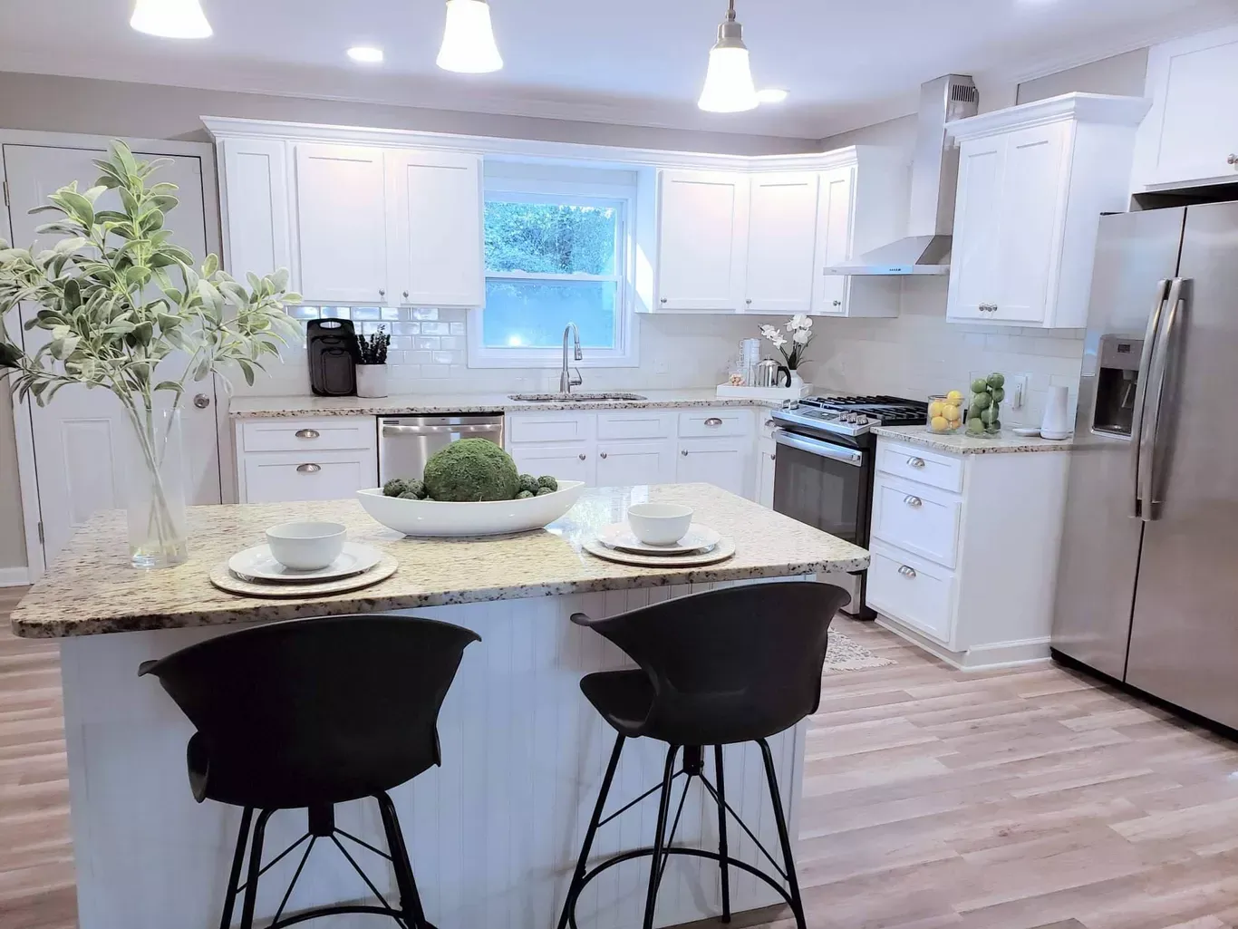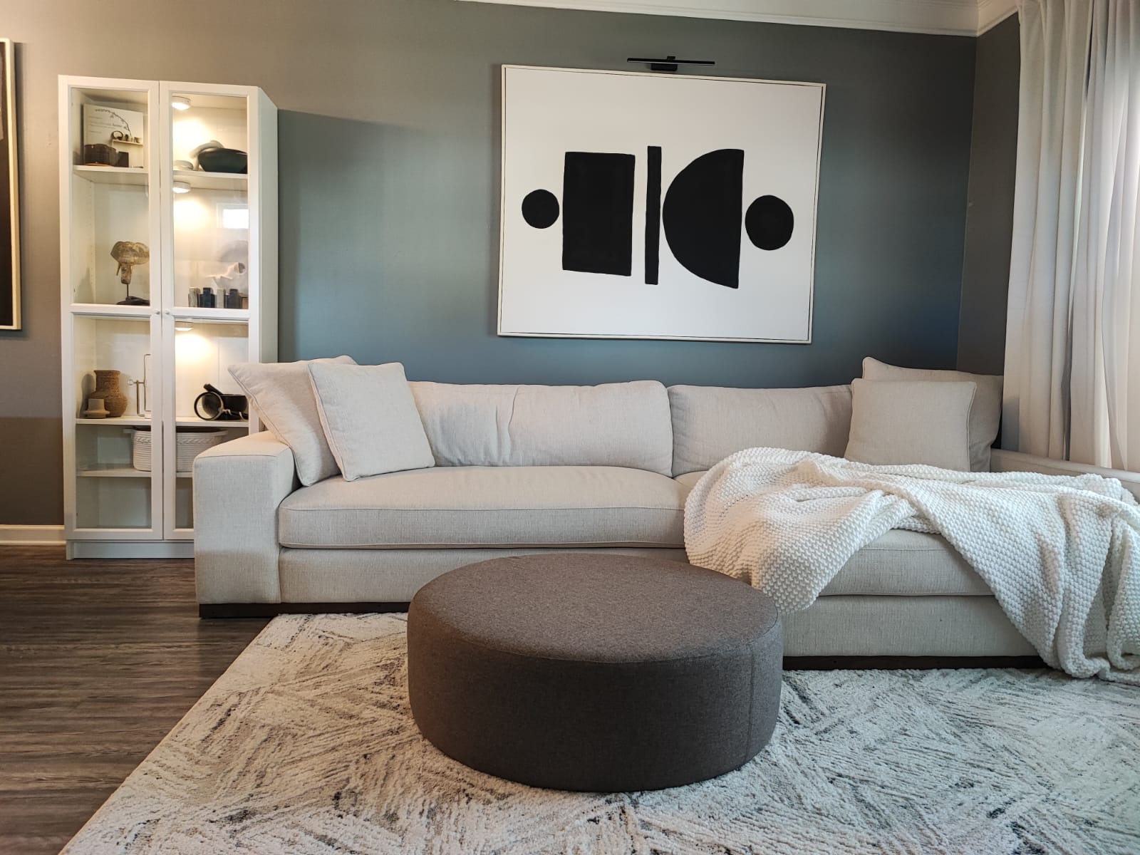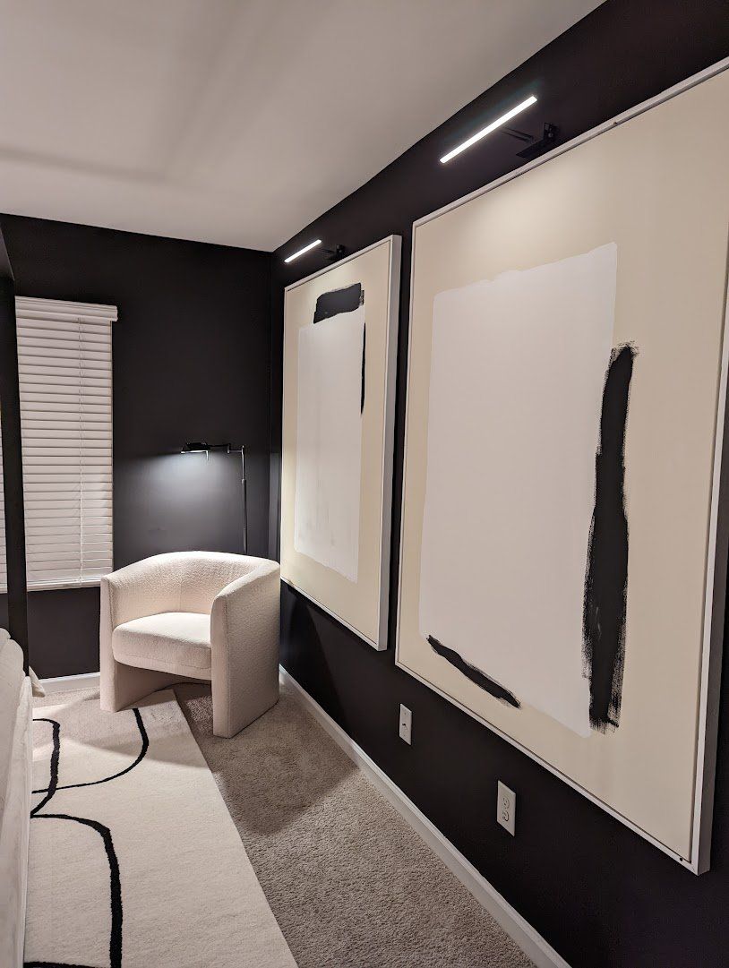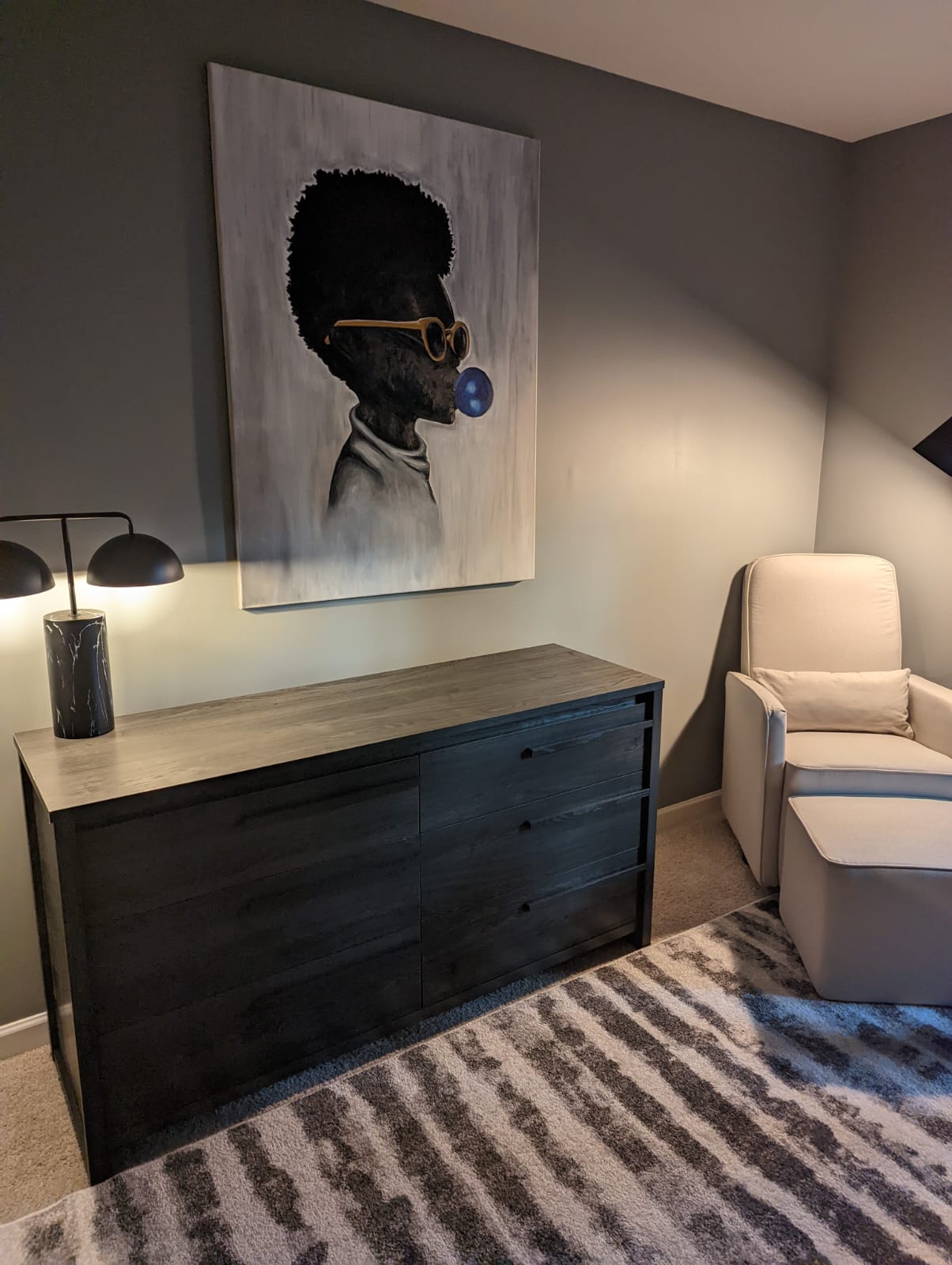 "My husband and I found out we were pregnant in April, and we were in mid-town Atlanta in a 1-bedroom condo. We moved to Decatur to get more space. All of the houses were in a good neighborhood but needed work on the inside. Marcus has a very good eye for modern decorating. It was too good to be true. He used my photography for black and white details. He found people to help with light fixtures and making our kitchen table. From end to end, the attention to detail and willingness to help us move in with furniture assembly. While creating the mood boards we could click a link that would show us the exact furniture for the space. His thoroughness from initial vision to final execution was phenomenal. There was transparency with the budget and where our money was going was very professional. The big reveal of the house was Amazing! "